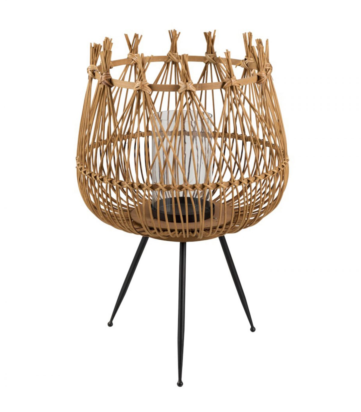 Siyah metal ayak üzerine, bambu fener, 42x42x67cm